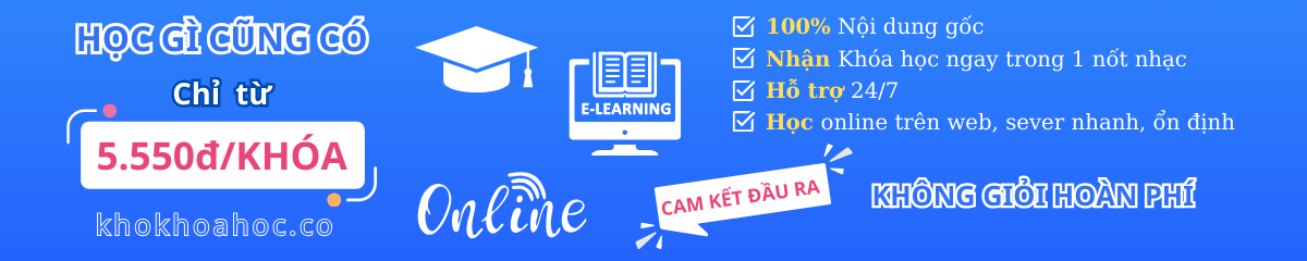 Tổng kho khóa học online lớn nhất hiện nay, uy tín, chất lượng và nhanh chóng. Chúng tôi liên tục cập nhật các khóa học mới đáp ứng nhu cầu của các bạn.